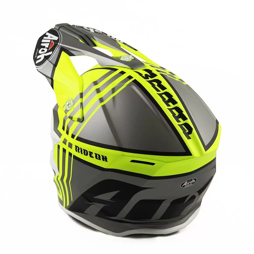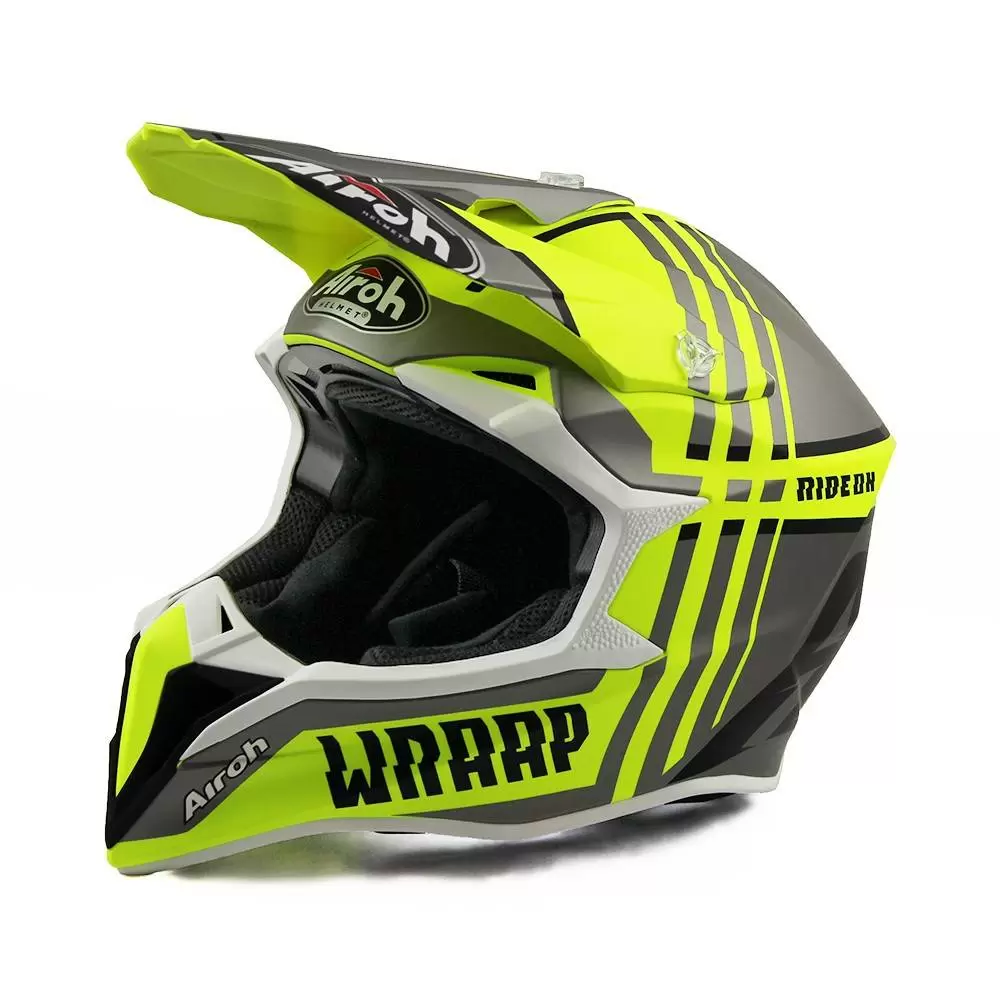 Airoh Wraap Broken Yellow Matt Helmet. WRAAP: The passion for the off-road has no age limits and the new Airoh helmet wants to be the best way to bring young people closer to this world. Ultralight shell in HRT (High Resistant Thermoplastic) with three different sizes to dress all sizes.