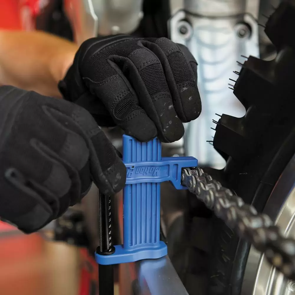 Universal SlackSetter Pro Chain Slack by Motion Pro®. Setting chain slack properly dramatically improves chain life. Accurately and quickly measure chain slack (not used to measure chain to swingarm clearance specification). Works on most street and dirt bike applications, up to 75mm chain slack. Lightweight compact design fits easily in your toolbox or road kit.