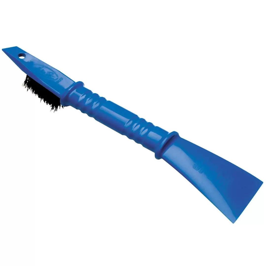 Motospade Cleaning brush by Motion Pro®. The two-ended design for ultimate versatility. Ergonomic handle and curved spade for the big stuff. Brush head for cleaning radiator and controls with a tip for footpegs and hard to reach areas.