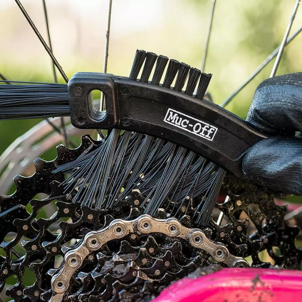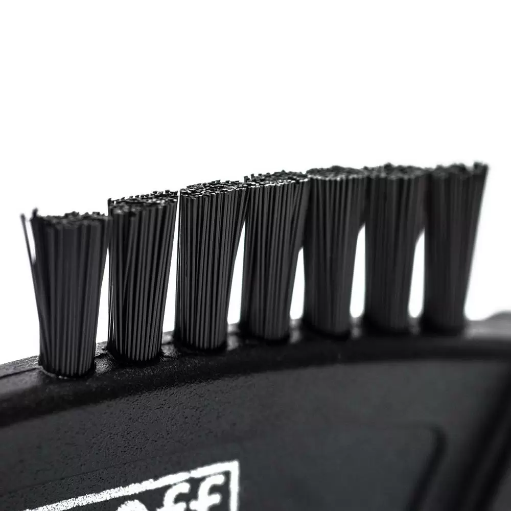 The Muc-Off Claw Brush boasts a high quality construction with three brush heads that feature tough nylon bristles and an integral scraper for mud de-clogging. It’s perfect for cleaning your bike’s chain, cassette, mechs and sprockets.