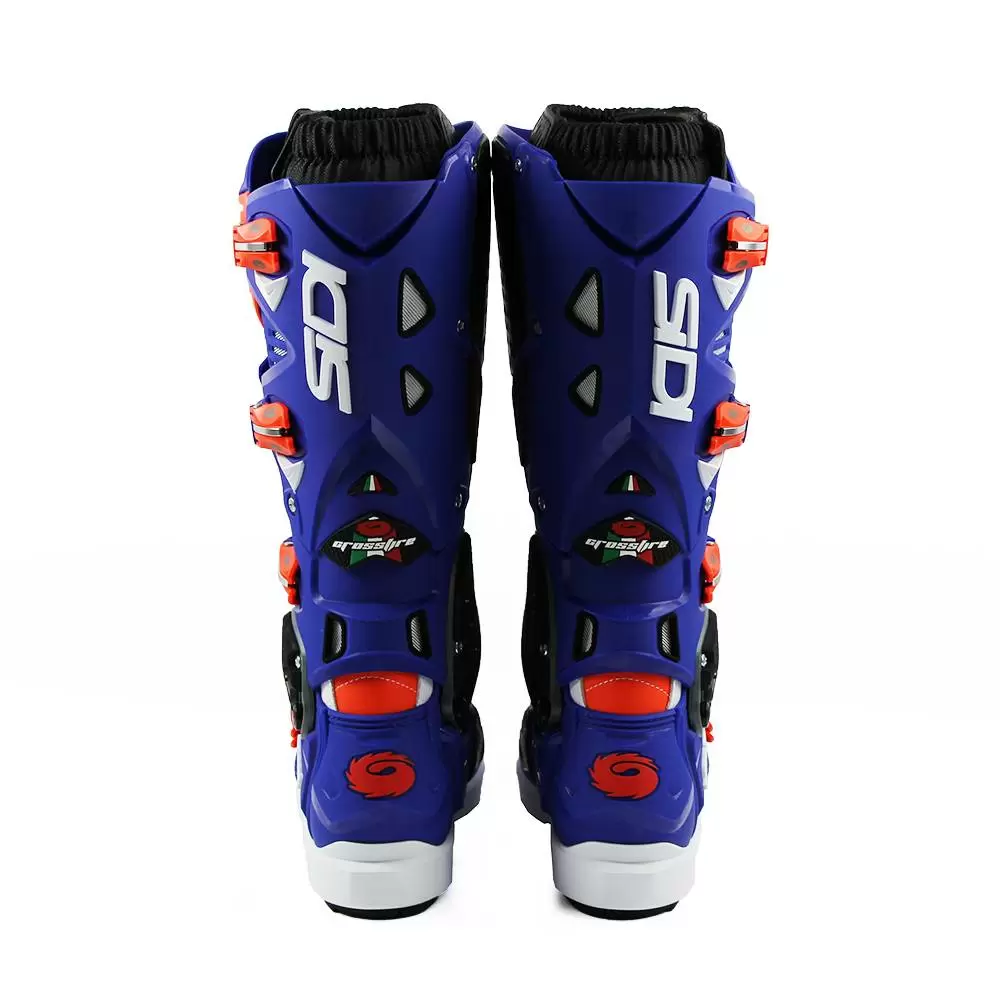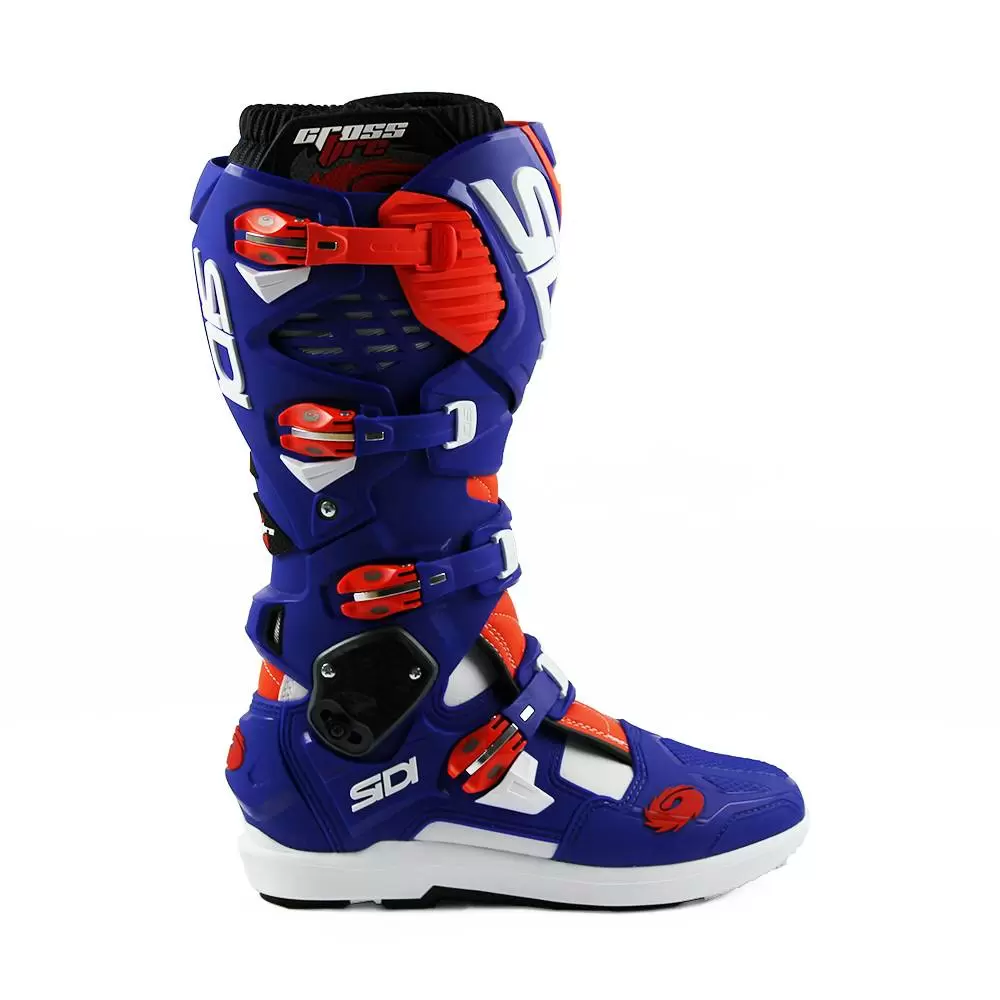 Sidi Crossfire 3 SRS Motocross Boots in White Blue Red Fluo. Sidi Presents Crossfire 3 SRS, The 3rd Generation of The No.1 Offroad Motocross & Enduro Boot.