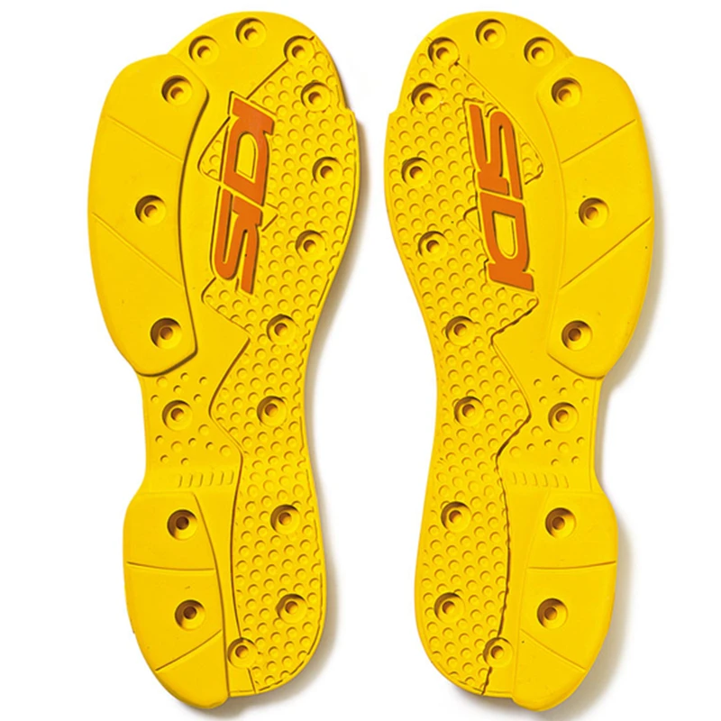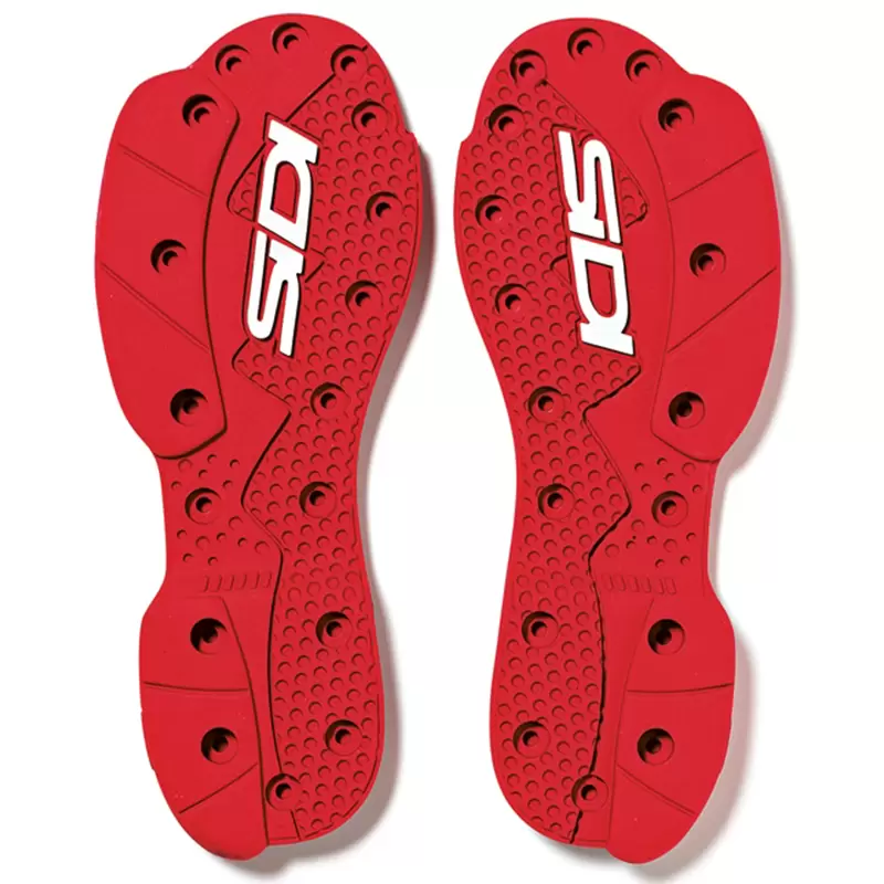 SMS Supermoto Soles by Sidi. The Sidi SMS Supermoto Soles are avalible in a choice of two colours Red & Yellow. However These are not fashion statements but soles of two different compounds that react differently depending on the track’s composition and temperature.