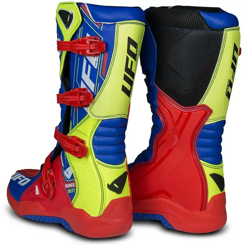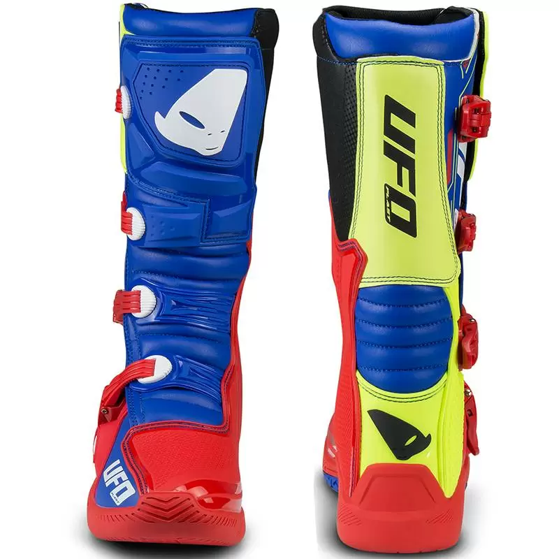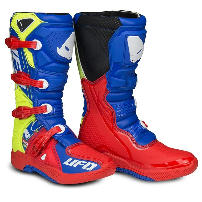 UFO Elektron Motocross Boots in Red Blue Neon Yellow – Motocross Enduro Boots & Accessories at MD Racing Products