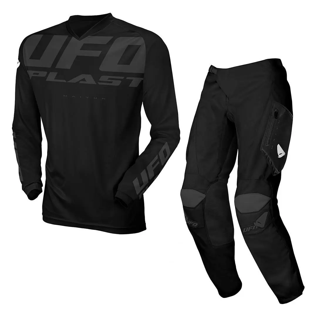 UFO MX23 Maiyun Black Jersey, Pant Combo Kit. The UFO Maiyun 2023 Motocross Kit Combo has been expertly made in compliance with stringent industry standards to offer a fusion of well-balanced design and high level of craftsmanship. Manufactured from industry-leading materials using up-to-date equipment, it ensures everlasting reliability and enduring value. This product is distinguished by total quality assurance, unsurpassed by anybody else.